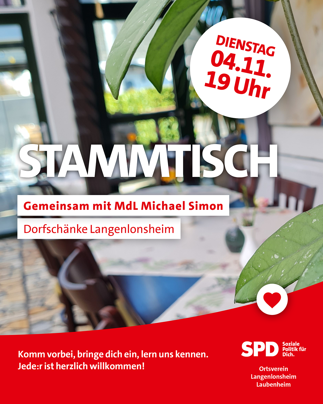 Am Dienstag, den 04.11.2025 ab 19:00 Uhr in der Dorschänke in Langenlonsheim.